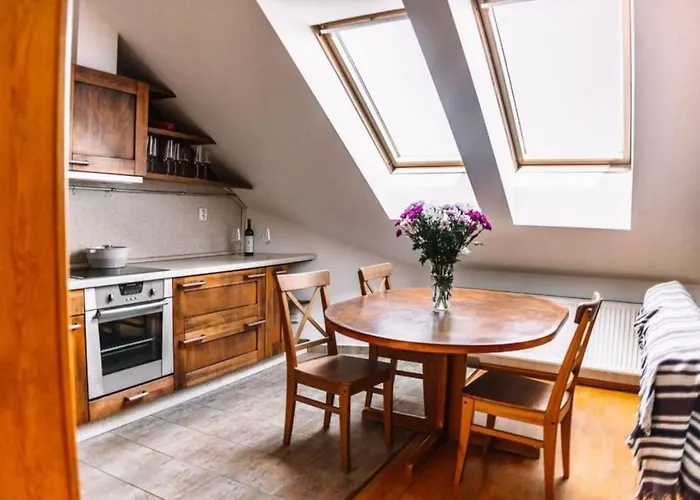Апартаменты располагают оснащённой всем необходимым кухней. В ресторане Kofarna Cafe, расположенном в 600 метрах, готовят блюда европейской кухни. В 5 минутах неспешного шага от этого места находится ближайшая автобусная остановка - Svandovo divadlo.